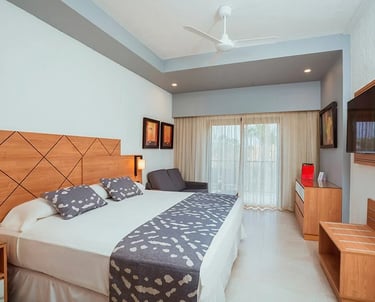 Equipar un hotel de esta magnitud y con este perfil de cliente supone un reto apasionante. En un entorno donde los huéspedes pasan la mayor parte del día fuera de la habitación —disfrutando de las fiestas en las piscinas, lanzándose por los toboganes o explorando el centro de Cabo San Lucas—, el equipamiento interior debía cumplir dos funciones primordiales:
