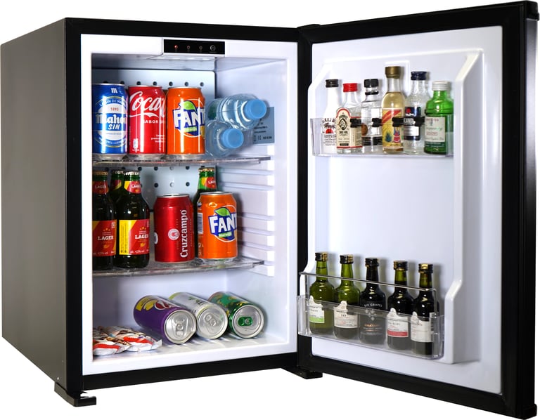 Reinicio Automático: Una vez finalizado el periodo de descanso, el minibar vuelve a su funcionamiento normal automáticamente para recuperar la temperatura.