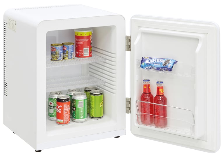 Este minibar 100% silencioso con un bajo consumo de energía utiliza para su refrigeración la tecnología de termoabsorción, sin compresores, ventiladores ni partes móviles y en cumplimiento con la actual normativa europea en eficiencia energética EU 2019/2016.
